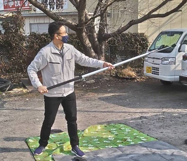 従業員が誰でもこのさすまたを使えるよう、今回の講習会を企画しました。