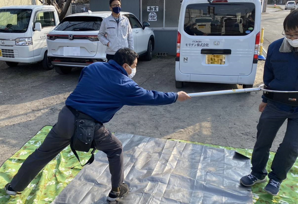 従業員が誰でもこのさすまたを使えるよう、今回の講習会を企画しました。